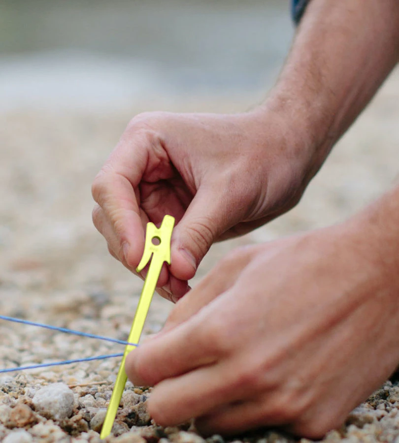 The three-point locking system is designed to hold cord or guylines, meaning there’s no need for knots, cord locks, or guyline tensioners for an even lighter pack weight for minimalist camping and trekking. The tapered design and easy striking point is perfect for driving into the ground.