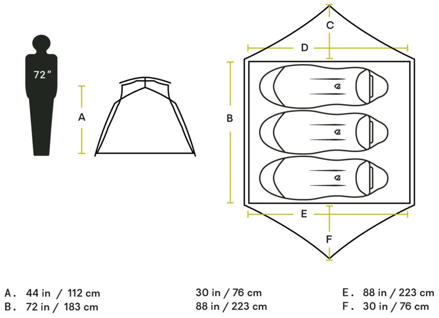 - Fly Fabric: 68D PU Polyester, 1200 mm HH