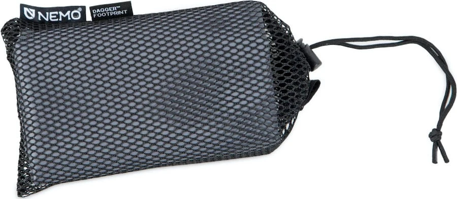 The Nemo Dagger 2 Footprint attaches securely to Dagger tents at perimeter points and packs in small into an included breathable mesh pouch with a drawstring.