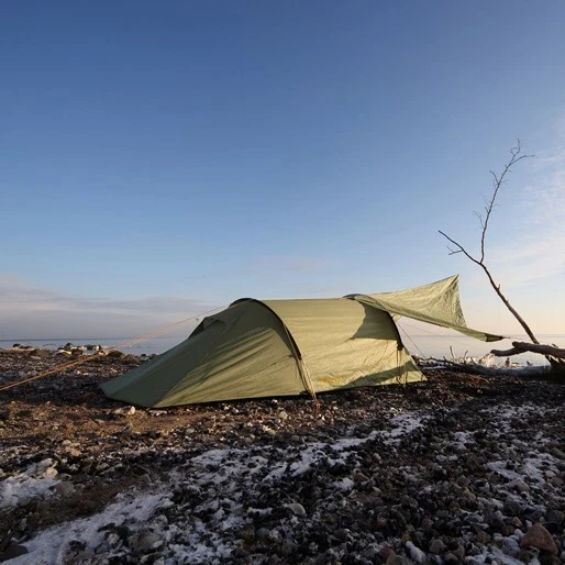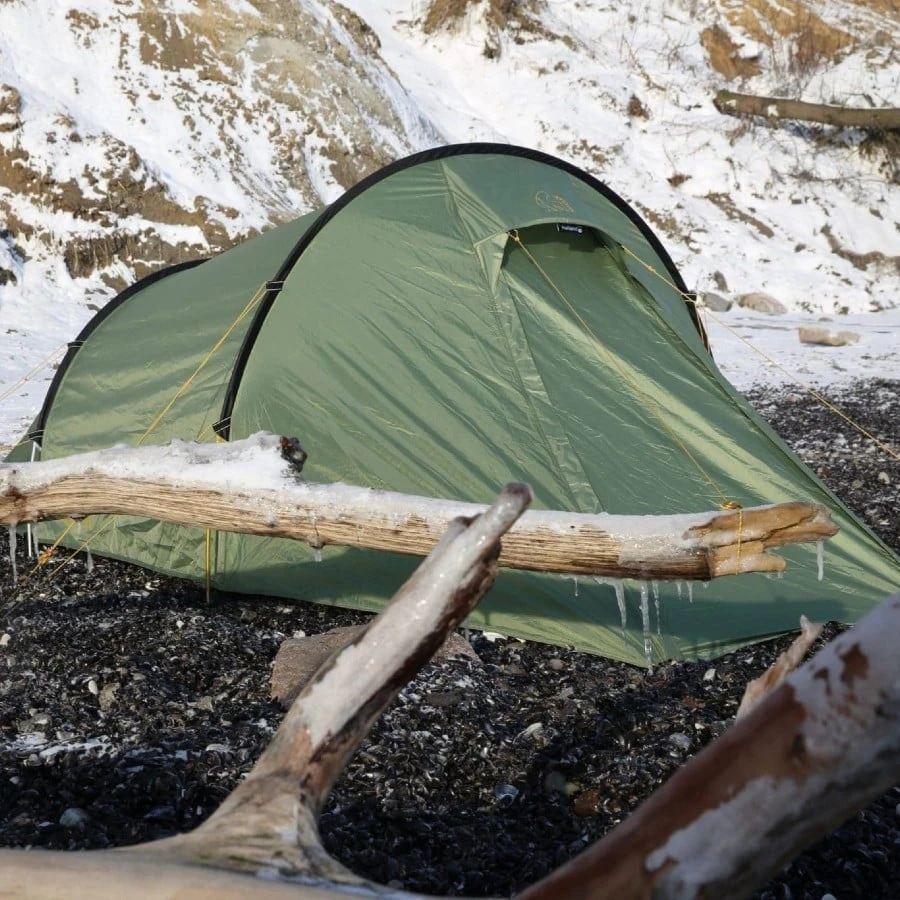 The Halland 2 PU pitches outer-first, with a simple two-pole construction that’s colour-coded for quick identification. The flysheet can be pitched as a standalone for warm-weather trekking or minimalist camping trips. The tunnel construction delivers a high level of wind stability making this a great tent for changing weather conditions.