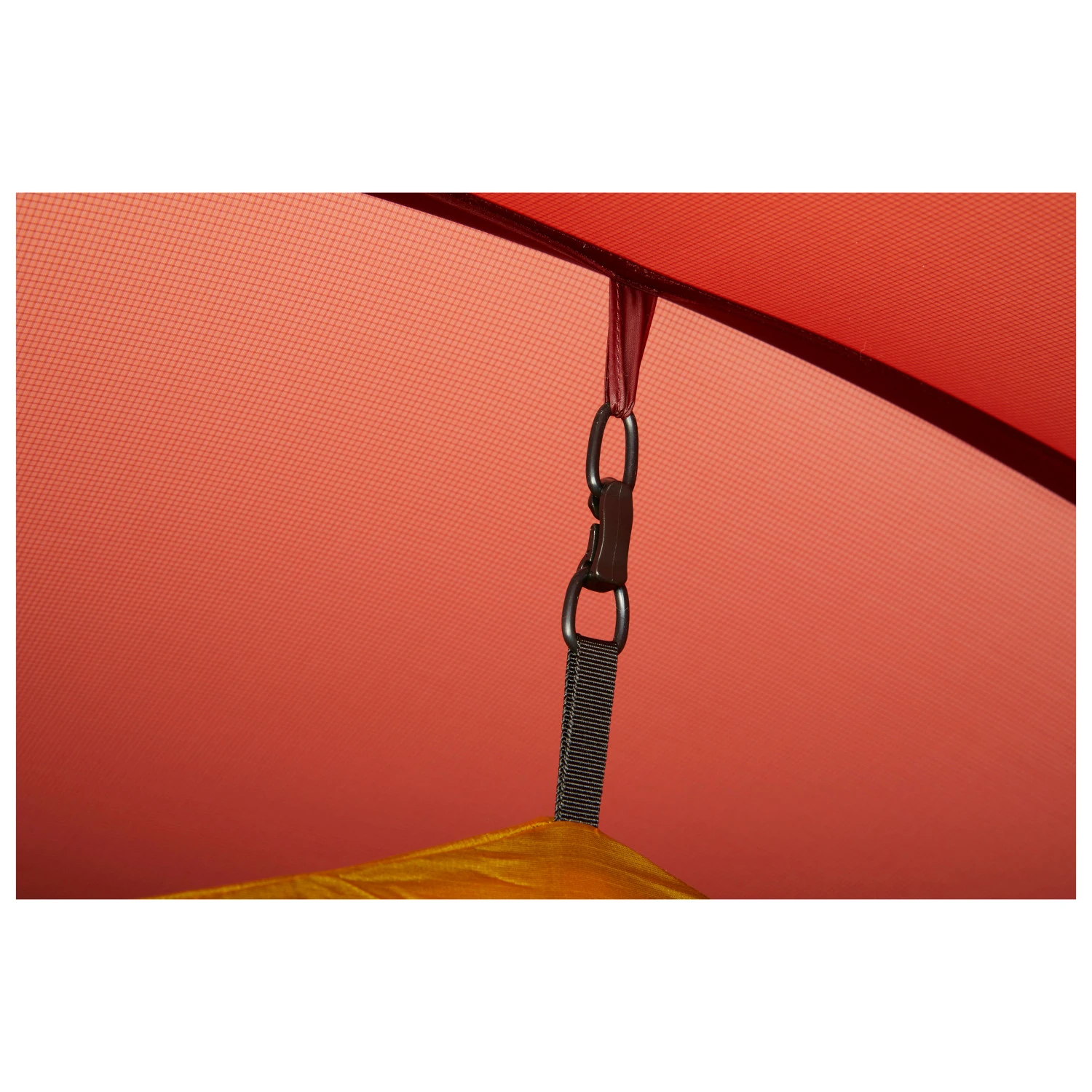 This two-man tunnel tent features lightweight DAC Featherlite aluminium poles for stability in windy conditions. Other advantages of a tunnel tent: The arched shape create steep walls, resulting in a spacious interior. The long shape also gives you a large vestibule with plenty of extra space for your kit. The inner tent can be attached after pitching the fly, which is a great option to have when it’s raining. Despite its spaciousness, the tent packs down nice and small and fits nicely in any trekking or mountaineering pack.