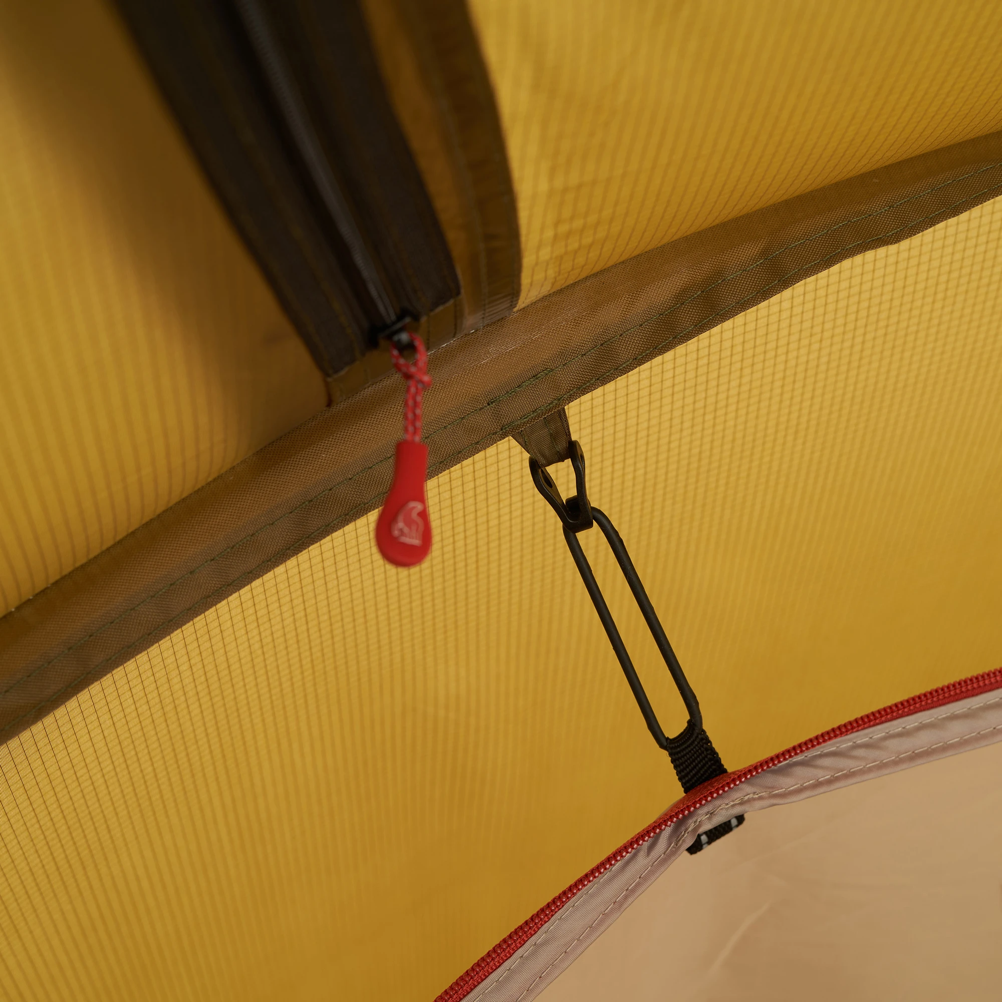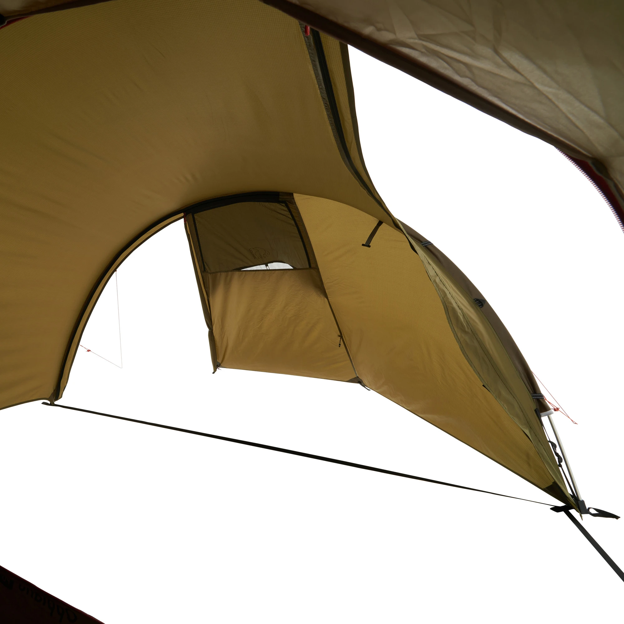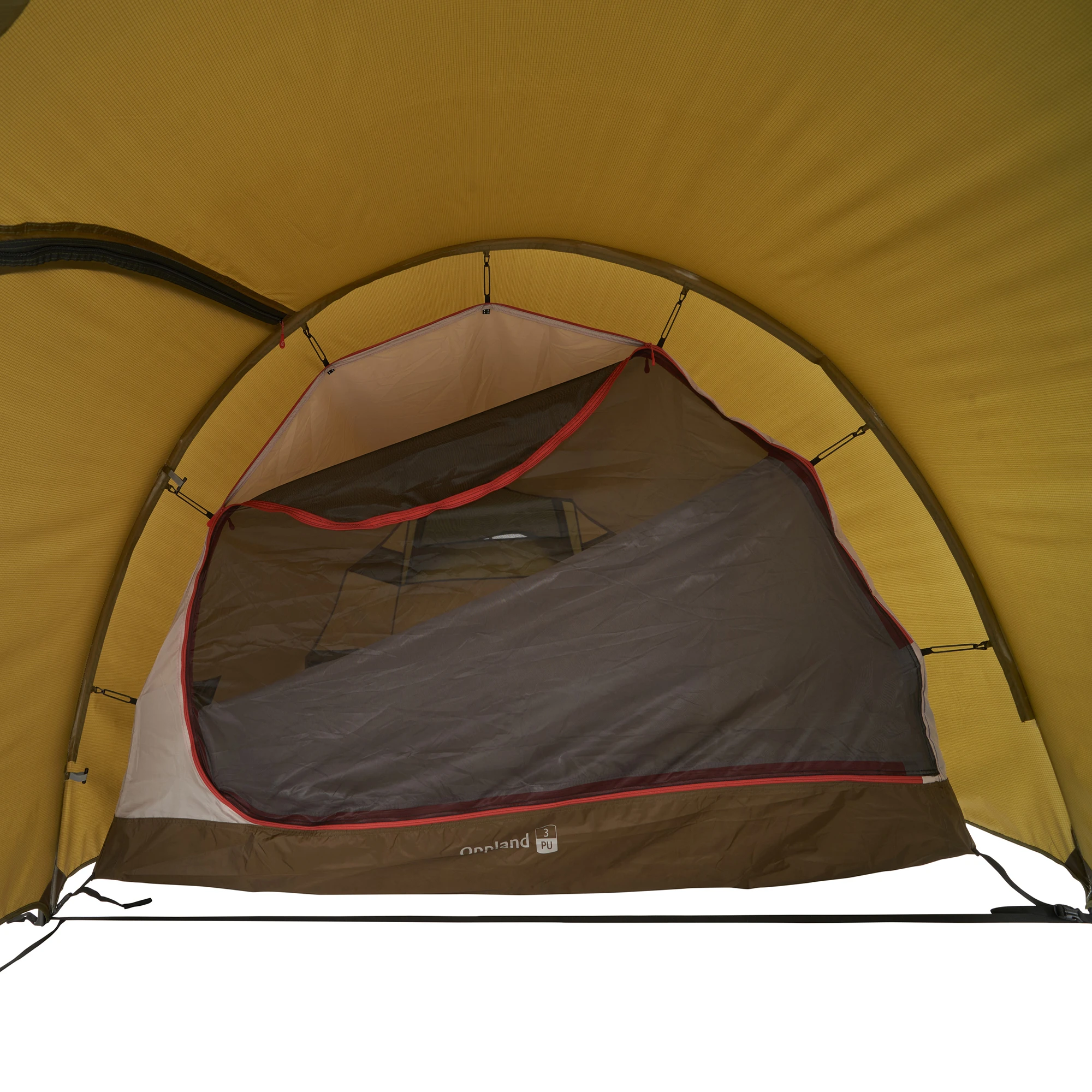 A large side entrance features all-around zippers and storage pockets to keep the door panel stowed out of the way. The Oppland 3 PU 2.0 tent features adaptable vents at each end which, together with the optional micro-mesh door panels, creates multiple options for ventilation and moisture management in warm weather.