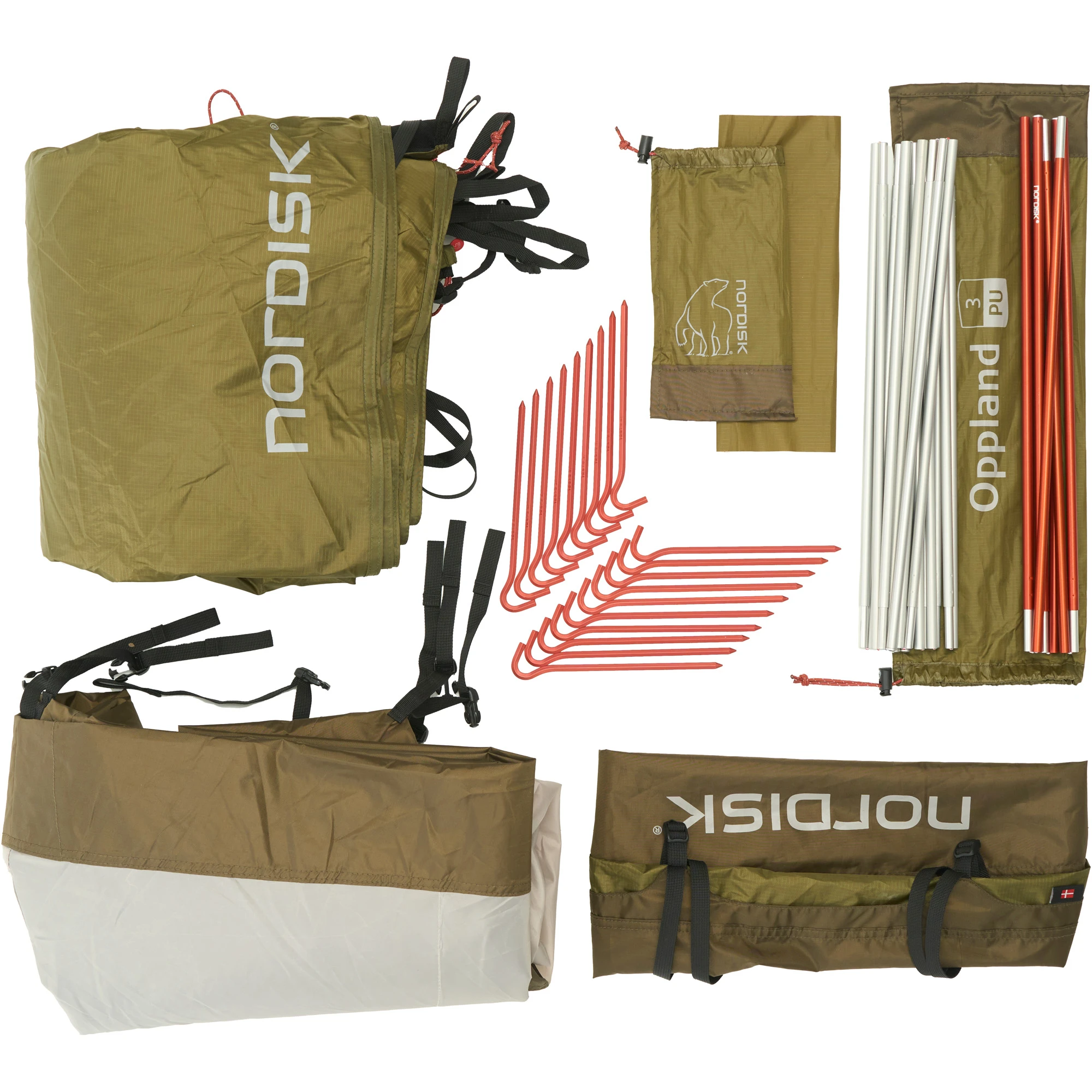 The Nordisk Oppland 3 PU 2.0 tent is a spacious three-person backpacking shelter with a strong tunnel construction and extended vestibule for practical comfort.