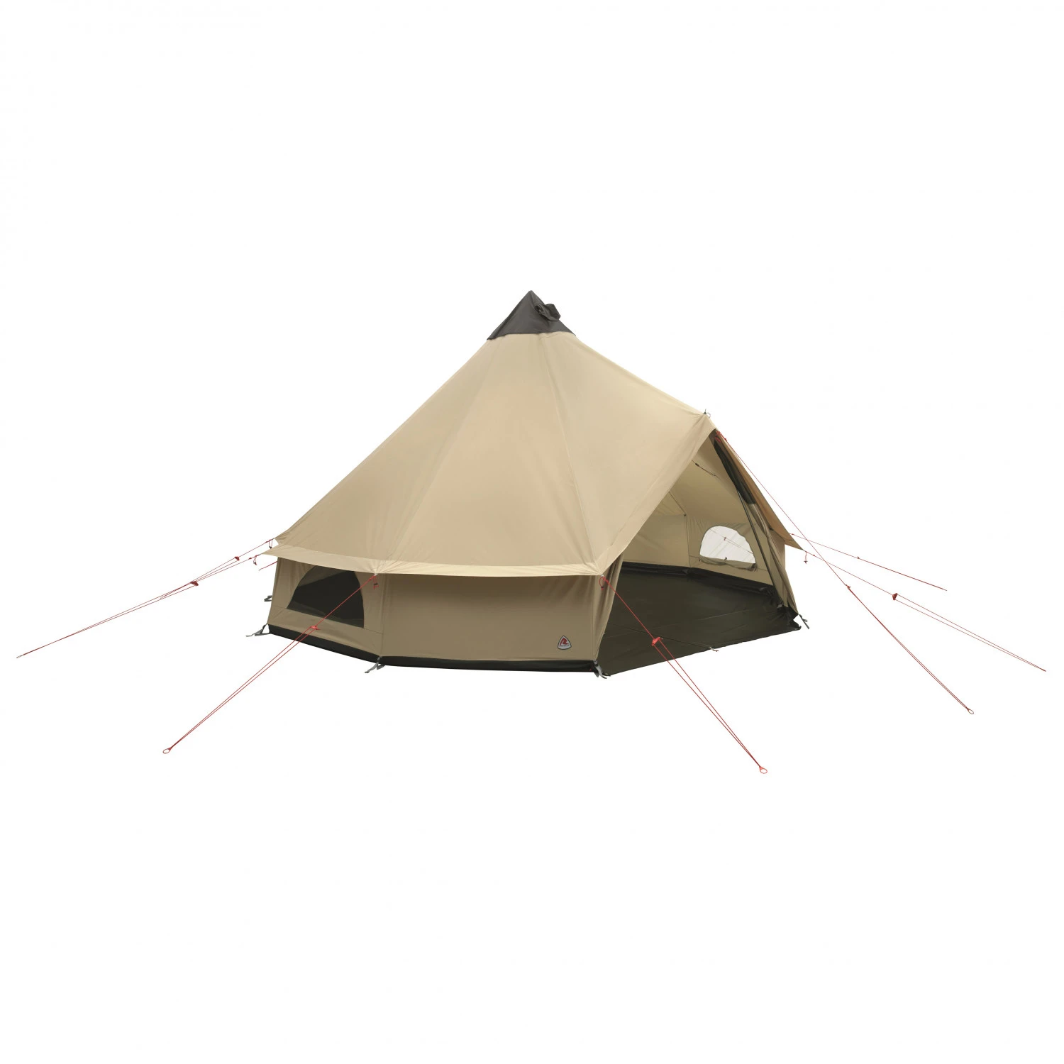 The tepee is made of the water repellent and breathable material HydroTex Polycotton. Its breathability keeps the inside pleasantly fresh on hot days. A water repellent coating