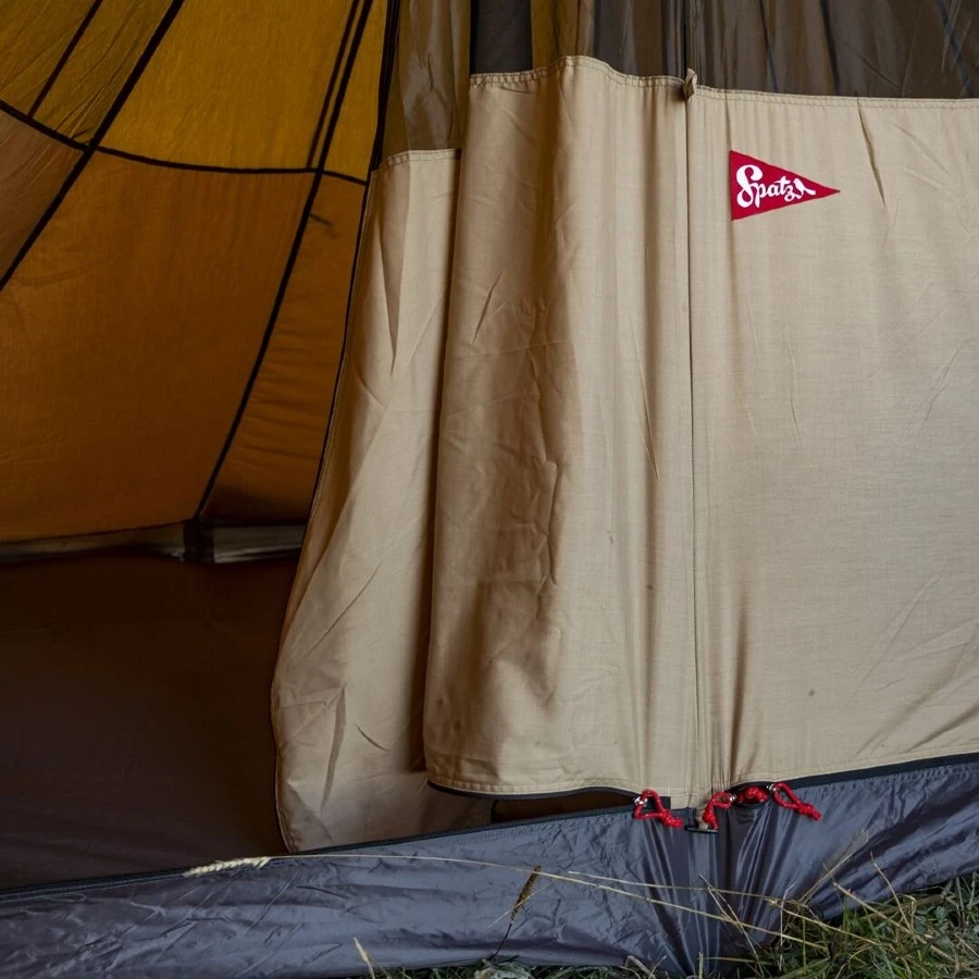 The Wigwam features Spatz’s high-quality breathable technical-cotton fabric in the fly and taped waterproof seams in the floor. BTC is a non-coated, breathable, water-repellent polyester/cotton fabric. Though heavier than their nylon/polyester counterparts, technical-cotton offers an incredibly durable and long-lasting construction. The fibres expand on contact with moisture to seal the fabric against water ingress. Technical Cotton is great at regulating temperature to ensure a fresh indoor climate helping you stay cool in warm weather, making it ideal for summer camping.
