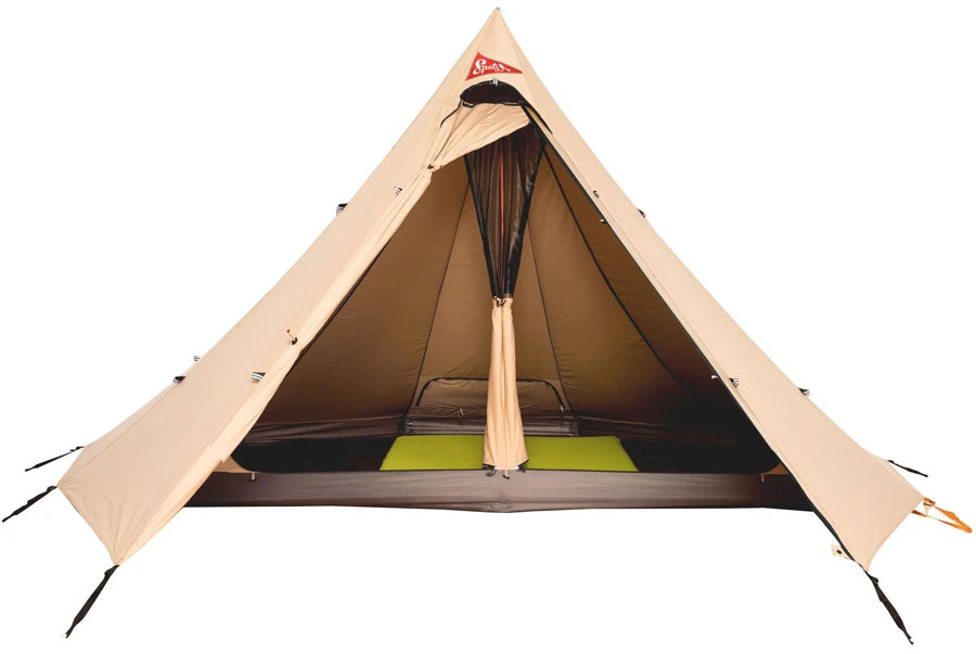 The Wigwam 5 BTC tipi tent from Spatz (formerly Nigor) draws from the same design as the Bach WickUp series but uses a breathable technical-cotton construction to deliver a durable and spacious family tent crafted for destination camping at the highest quality.