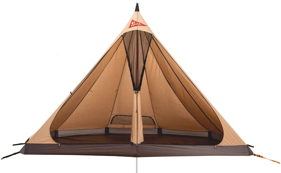 Inside, there’s room enough for 5 people and sleeping pads with single door access and 3 vents in the roof for airflow and moisture management. The vestibule is large enough for extra gear storage. With a peak height of 205 cm, the Wigwam 5 offers ample head room. The sleeping compartment features a double, panel/mesh door for added ventilation and privacy while keeping out insects. An optional zip vent in the lower rear wall delivers added airflow for comfort in hot weather.