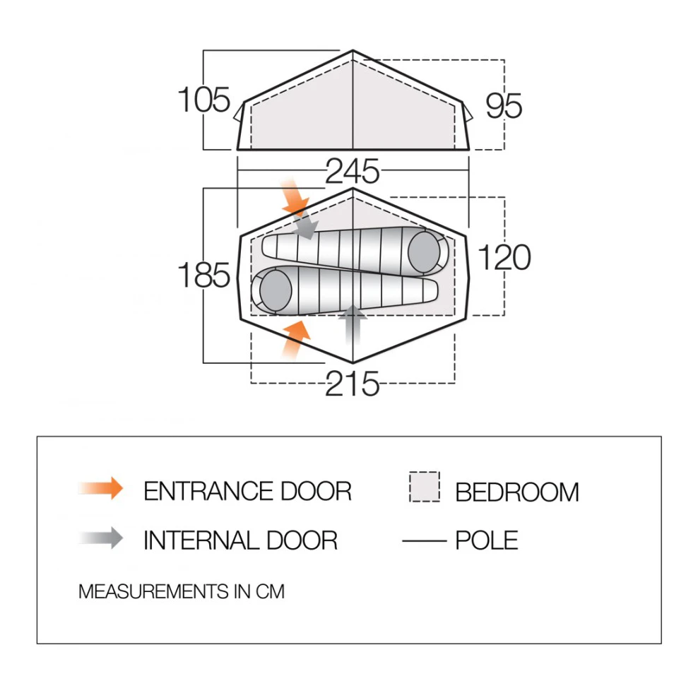 | Flysheet info | Vango ProTex 70D 190T polyester flysheet (3000 mm hydrostatic head); sealed seams |